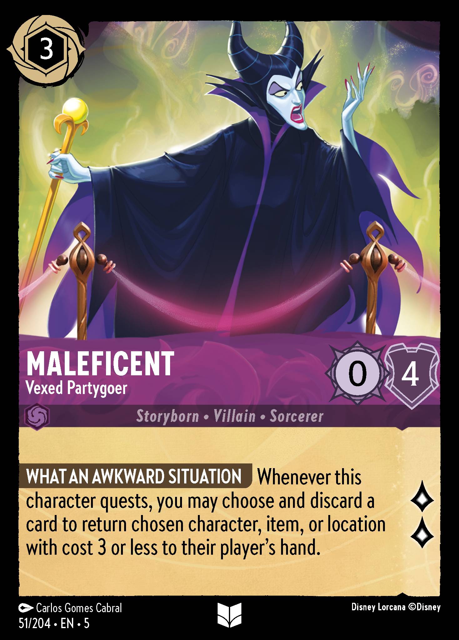 Maleficent - Vexed Partygoer from Shimmering Skies. Ink: Amethyst, Rarity: Uncommon.