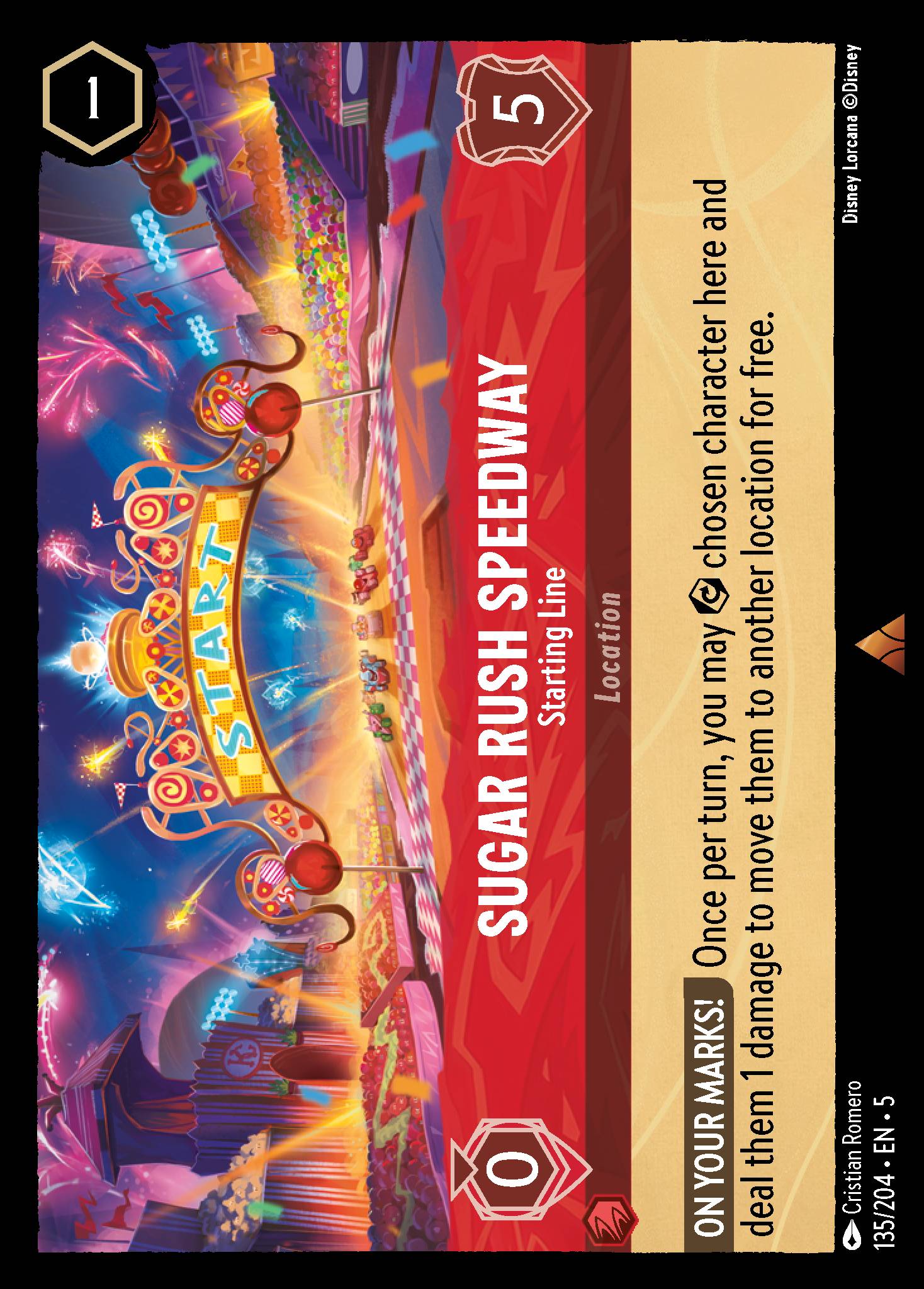 Sugar Rush Speedway - Starting Line from Shimmering Skies. Ink: Ruby, Rarity: Rare.