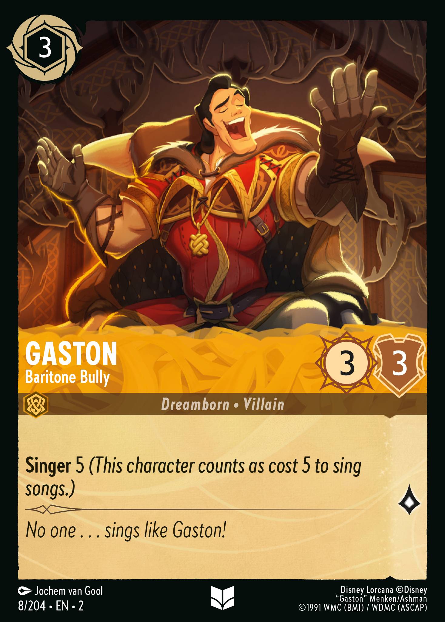 Gaston - Baritone Bully from Rise of the Floodborn. Ink: Amber, Rarity: Uncommon.