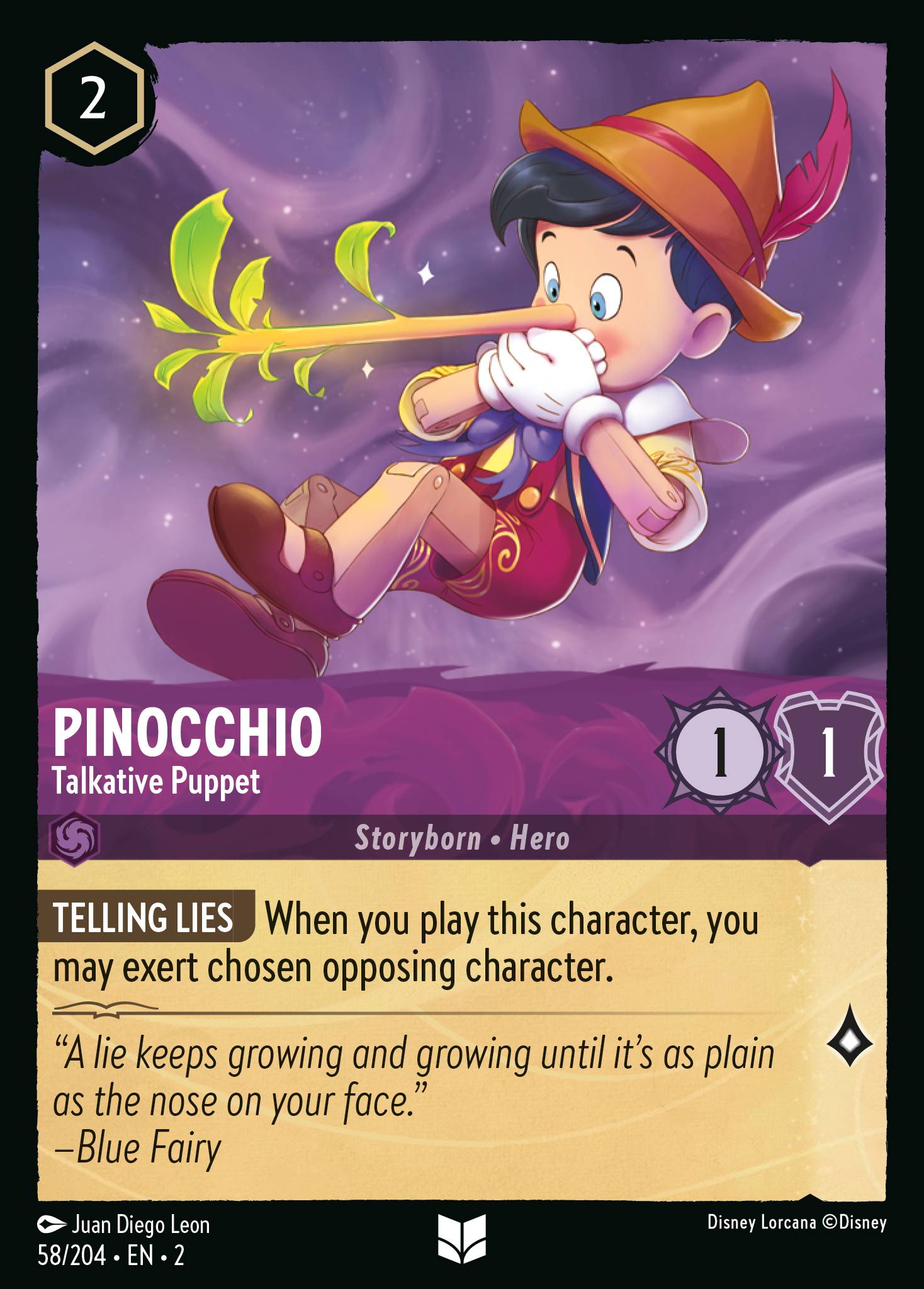 Pinocchio - Talkative Puppet from Rise of the Floodborn. Ink: Amethyst, Rarity: Uncommon.