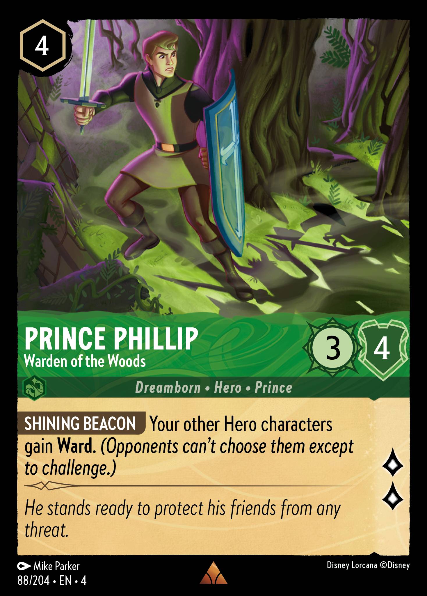 Prince Phillip - Warden of the Woods from Ursula's Return. Ink: Emerald, Rarity: Rare.